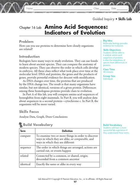 Read Online Evolution Lab - Amino Acids - Olympia High School - Ohs Reader
